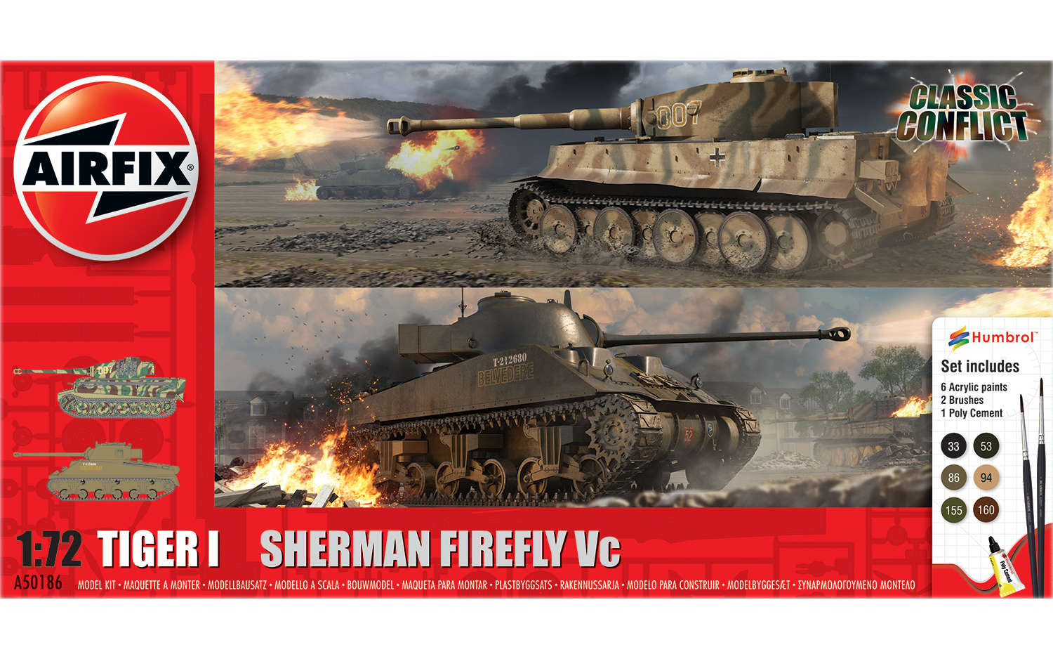 AIRFIX A50186 Gift Set - Classic Conflict Tiger 1 vs Sherman Firefly - 1:72